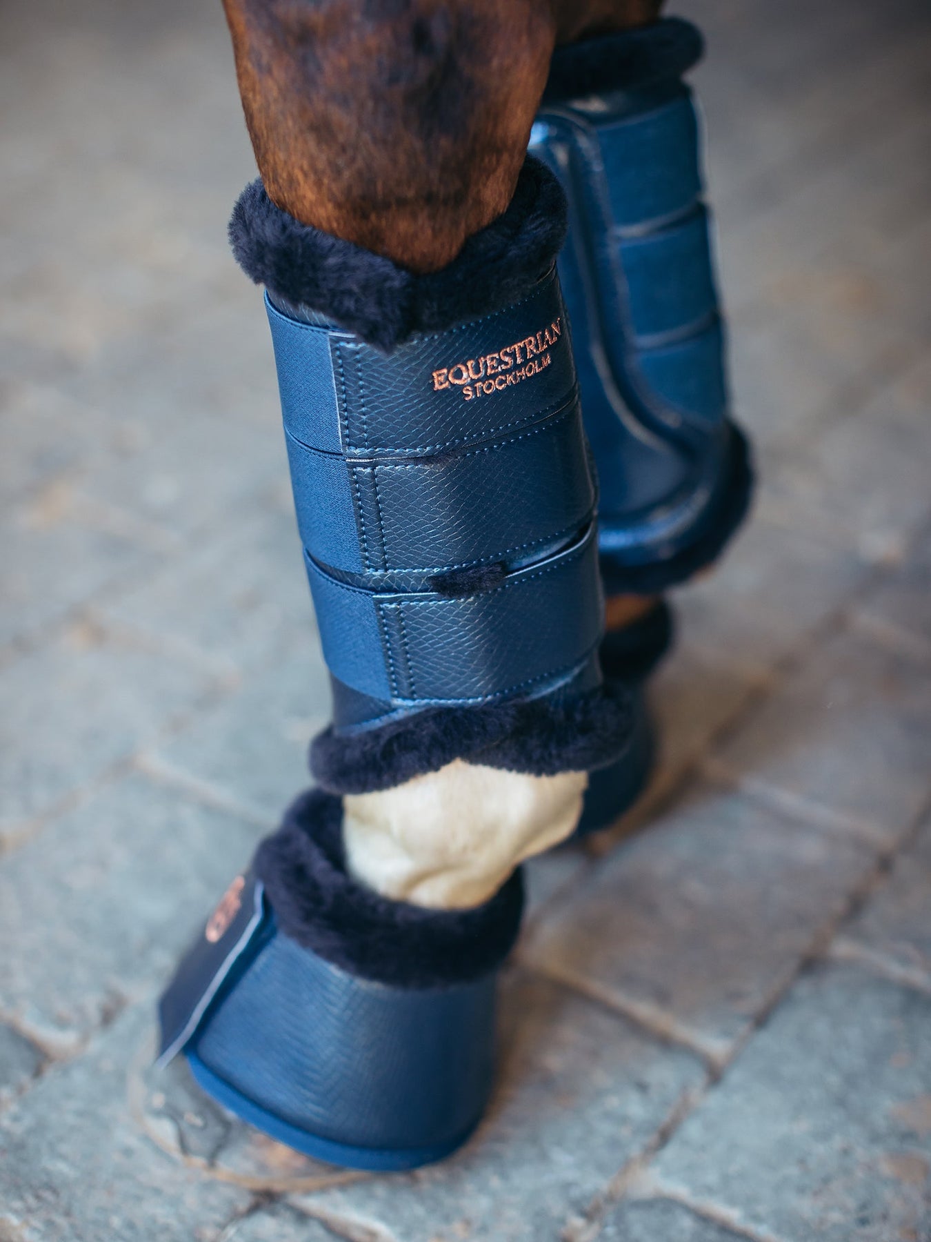 The Bell Boots from Equestrian Stockholm are made from high-quality faux leather with a matte finish. Super soft teddy fleece faux fur on the inside sits gently against your horses leg for comfort and protection.