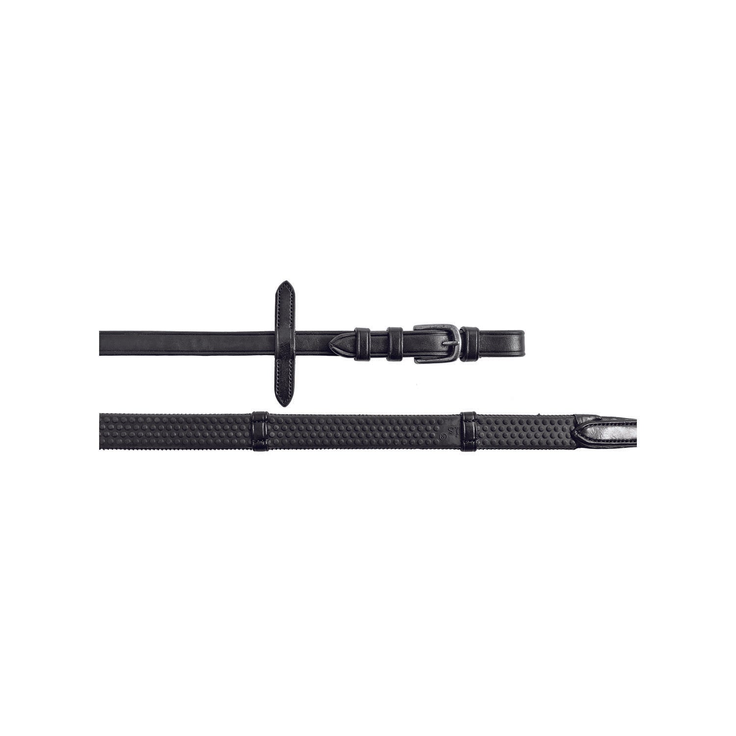 Reins for English bridle in high quality soft leather with nickel-plated buckles that provide safety and greater resistance over time.