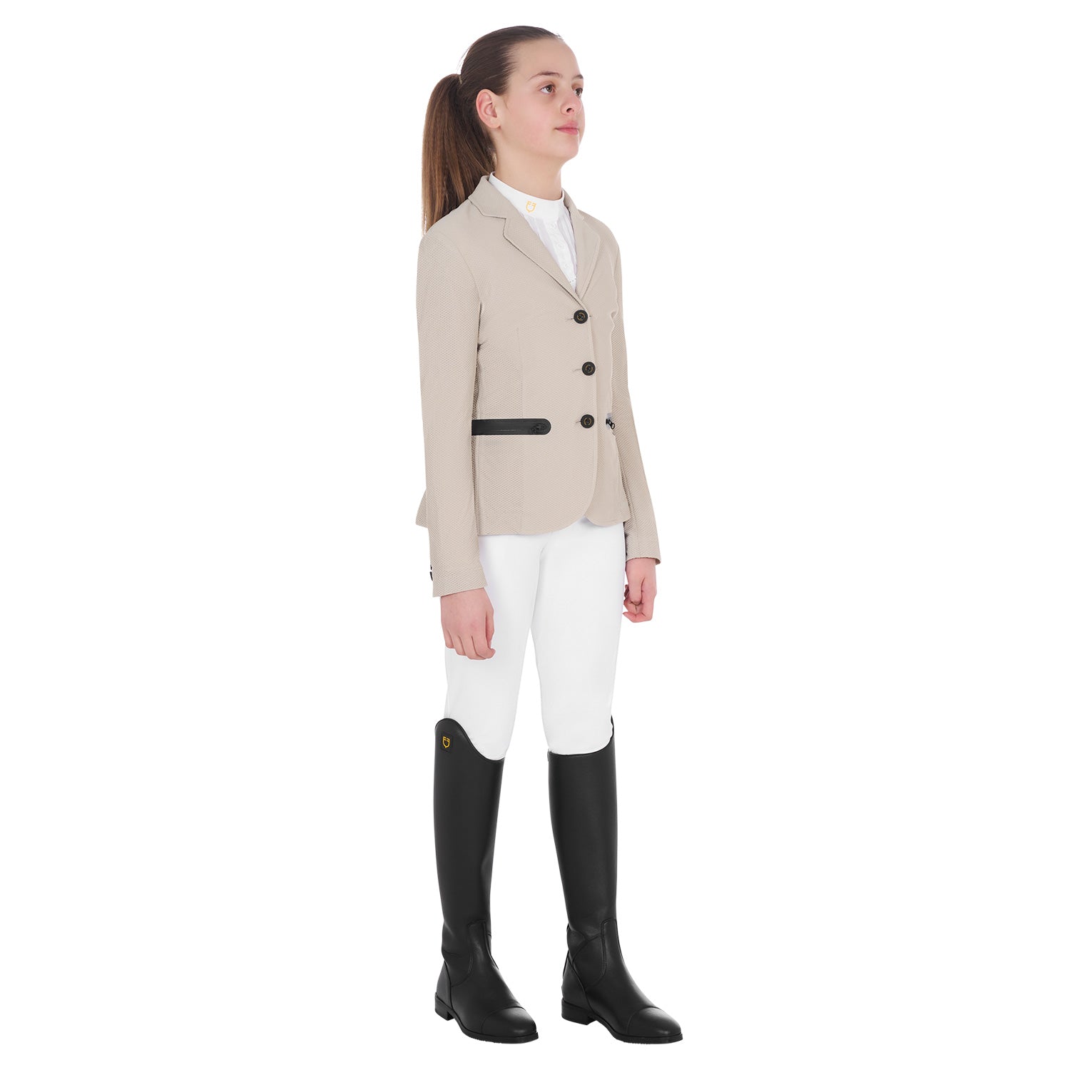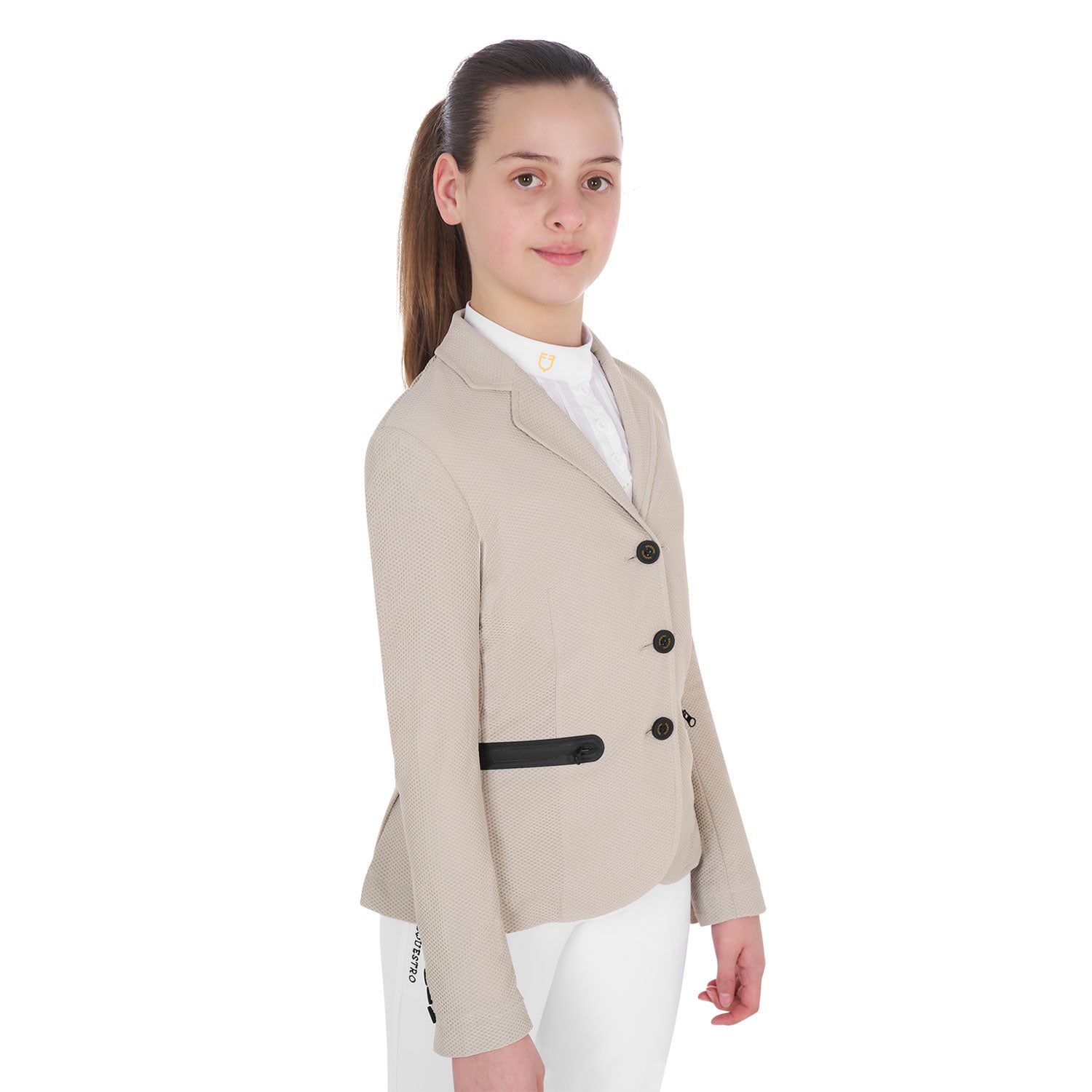 Equestro Girls' Three-Button Competition Jacket Perforated Fabric