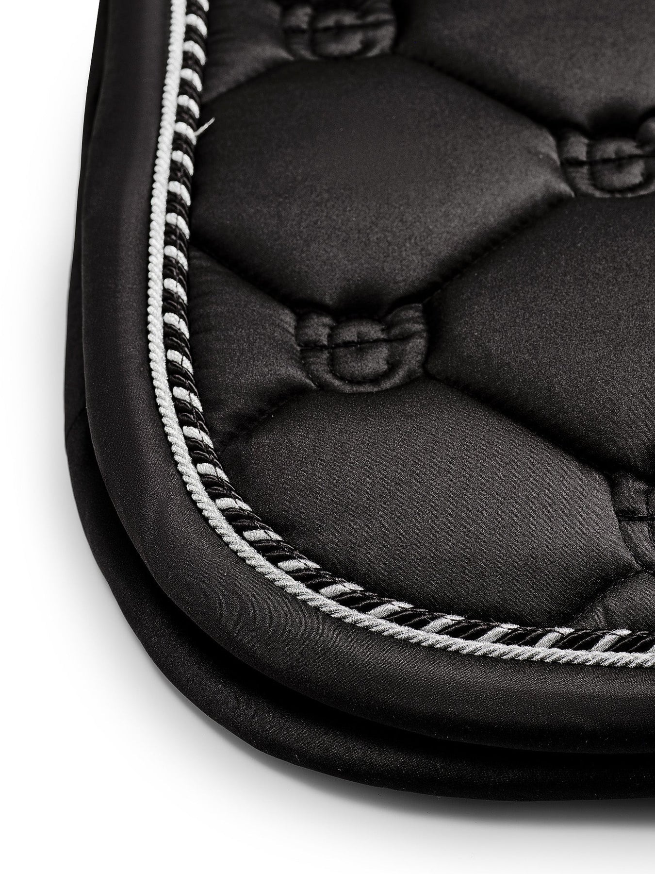 The Classic Dressage Saddle Pad from Equestrian Stockholm is in silver and pattern in the equestrian stockholm logo. Featuring beautiful detailing and the signature Equestrian Stockholm badge.