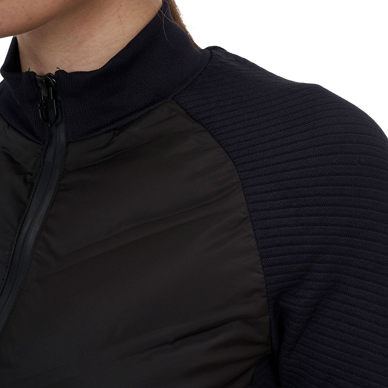 Equestro Women's Ridertechnology Full Zip Hibryd Nylon Con Knit Quilted Jacket - Black