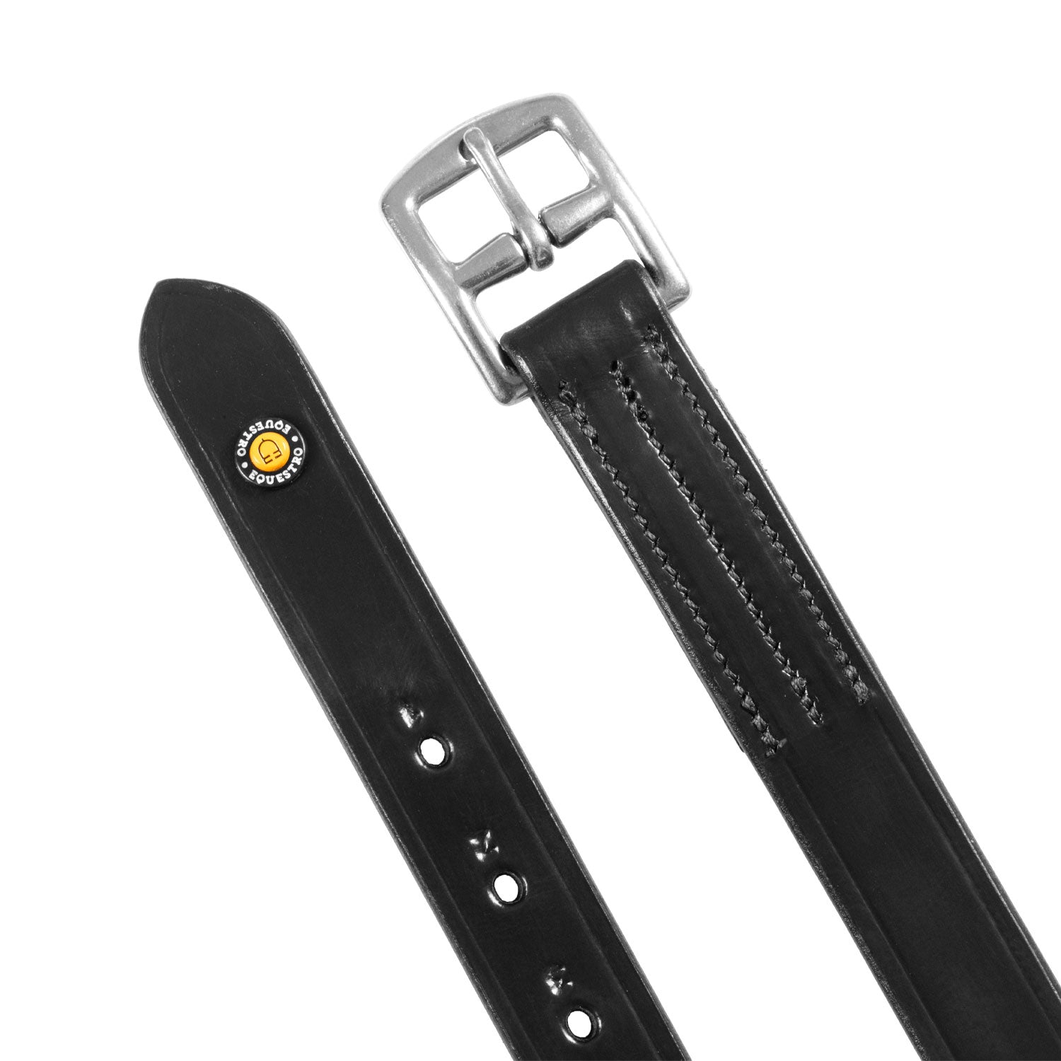 The addition of sturdy stainless steel buckles makes this a high-performance accessory of superior quality. The design is enhanced with a yellow pin bearing the Equestro logo.