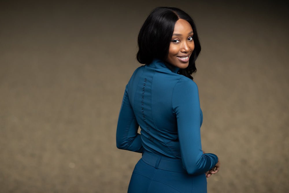 The Vision Top from Equestrian Stockholm is the perfect flattering long sleeved training top. Made from a luxurious, wicking and breathable recycled polyester fabric, this stretchy comfortable slim fit design is ideal for riding and around the yard.