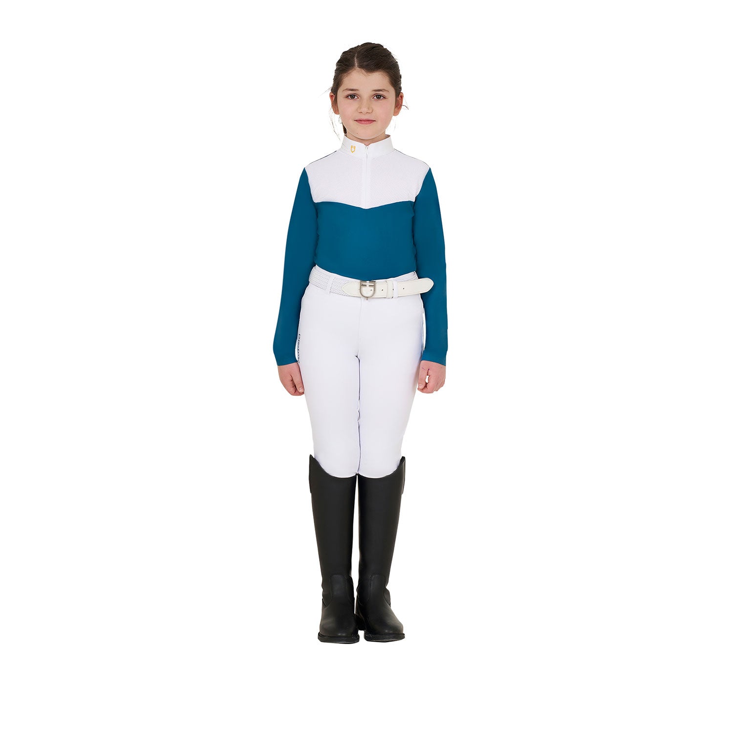 Girls' slim fit long-sleeved polo shirt, designed for young riders who want to feel elegant and handsome during competitions.