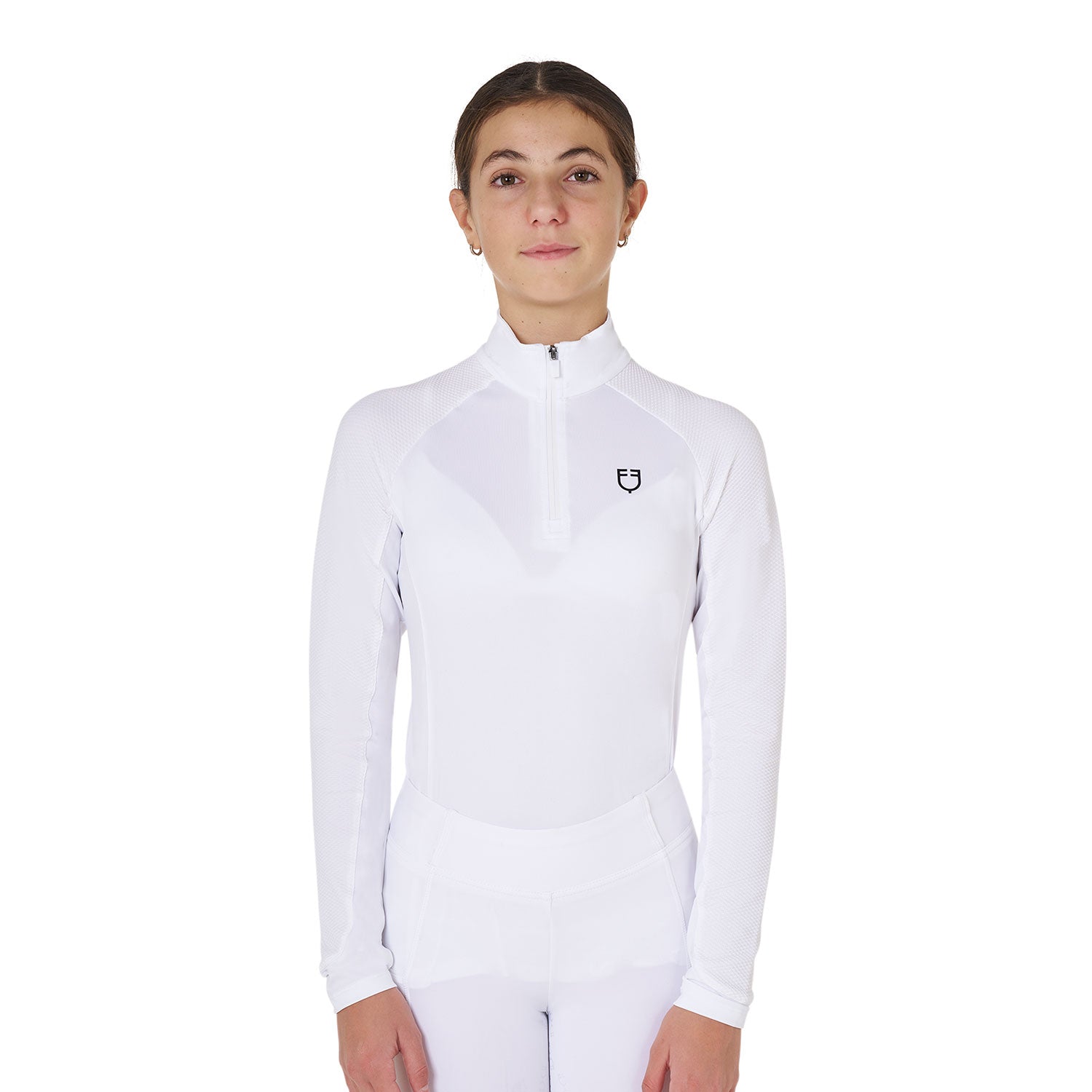 This unisex, slim-fit, long-sleeved junior base layer in breathable technical fabric is the perfect piece for transitional seasons.