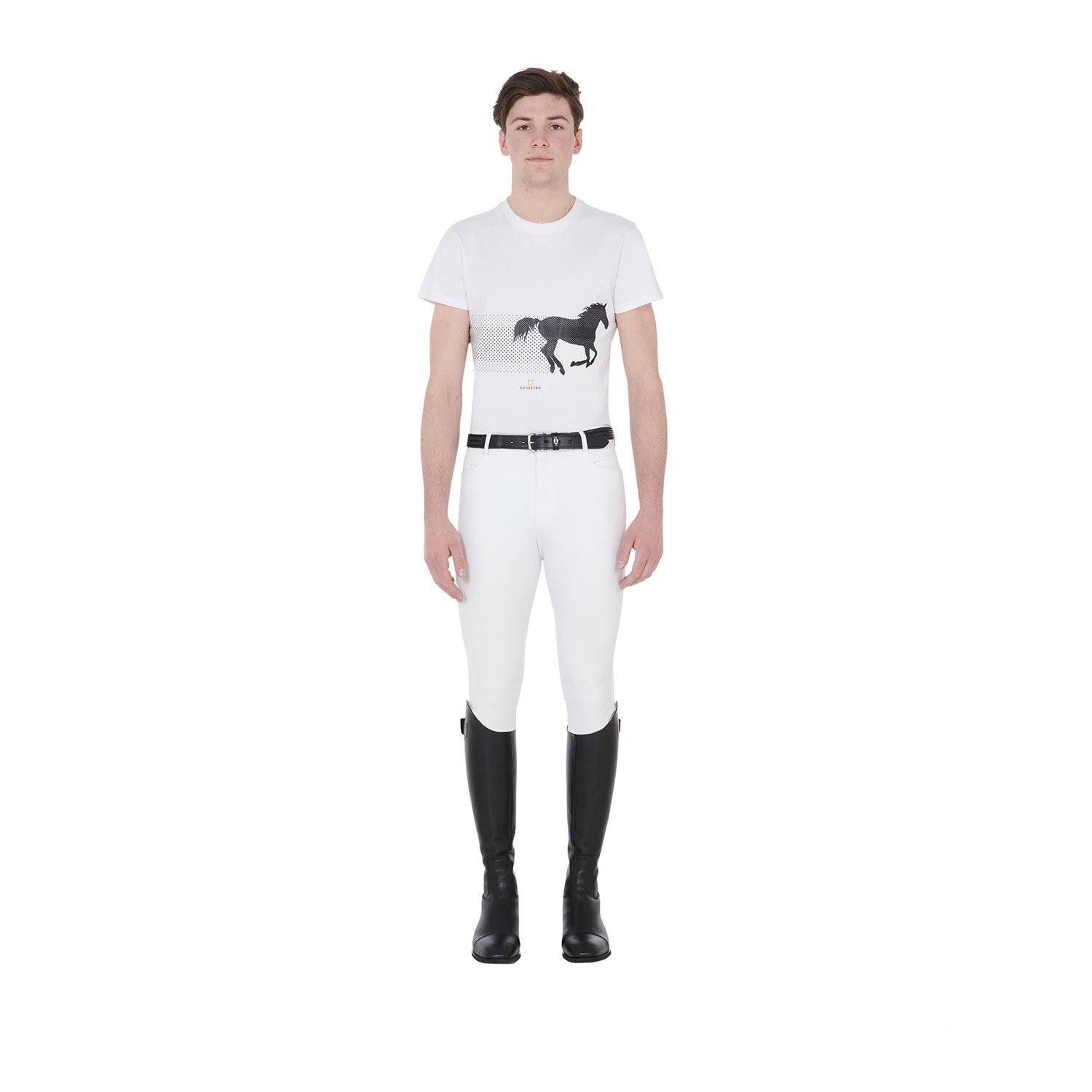 Equestro Men's Slim Fit T-Shirt with Race Horse - White