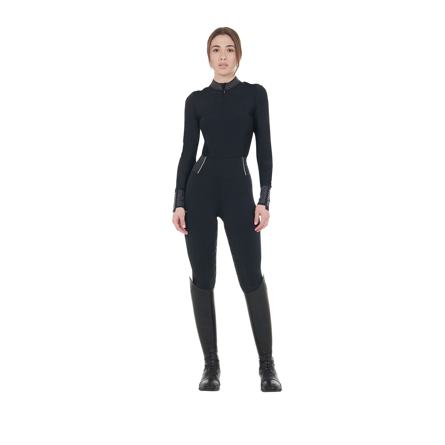 Equestro Women's Tecnical Training Polo Shirt Rhinestones - Black